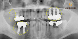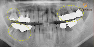 금으로 씌워져 있는 소구치에도 염증이 발생되어 있었습니다.