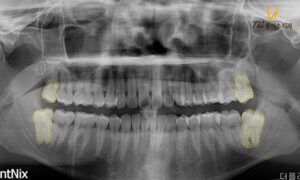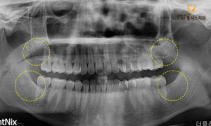 특히 왼쪽 아래의 사랑니의 뿌리를 보시면